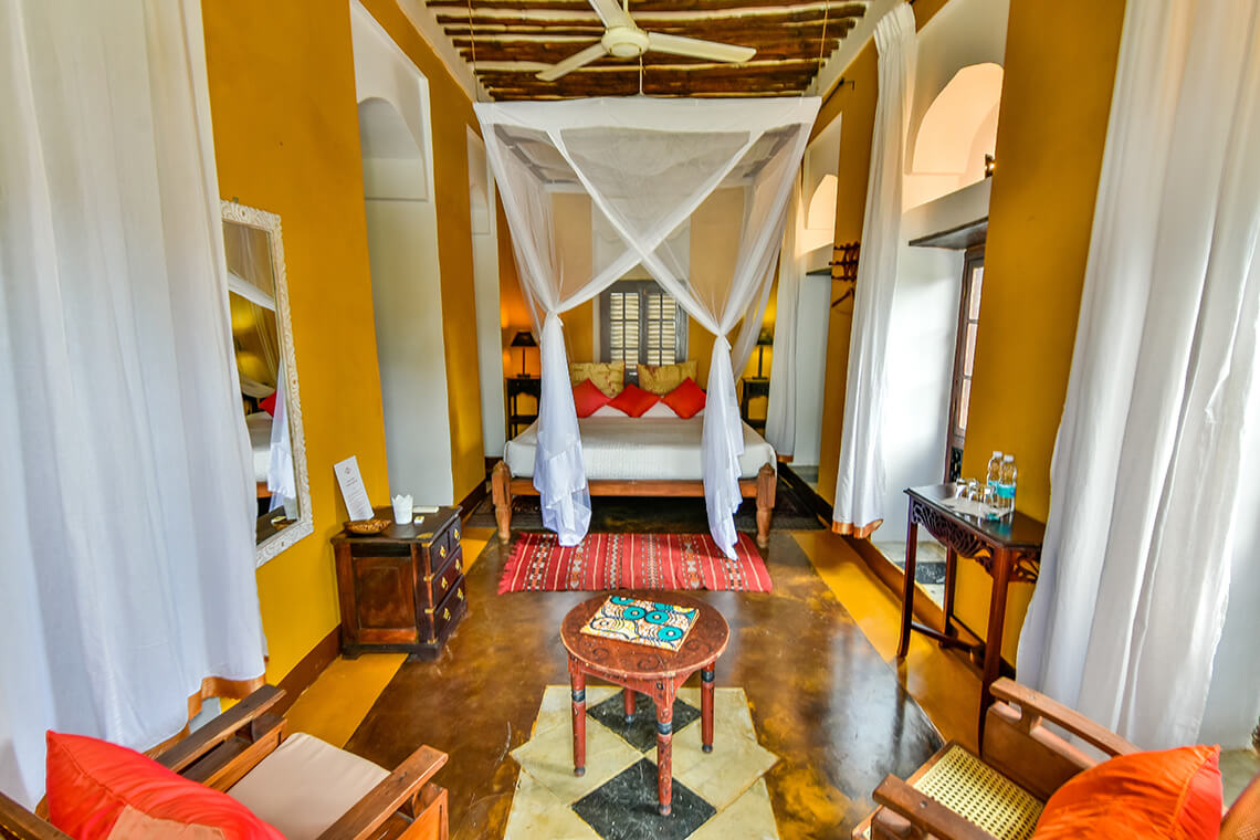 Each suite is uniquely designed with Swahili coast furnishings and adorned with a vast collection of antiques and Zanzibarian influenced décor. The Swahili Prestige suite has an extra-large en-suite bath.